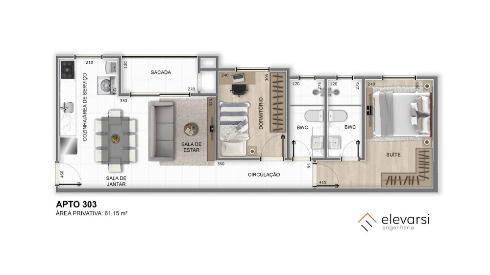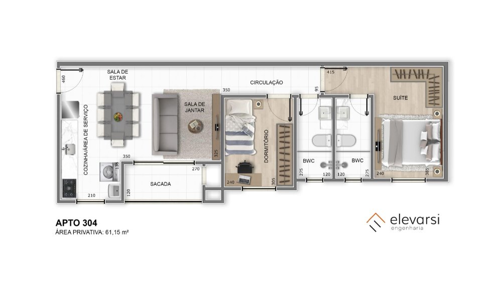 - Área Privativa: 61,15 m²