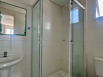 - Banheiro social com armários e box blindex.