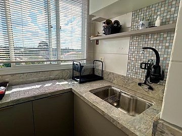 - Cozinha planejada com bancada em granito, fogão cooktop 4 bocas, forno, armários sob medida e suggar;