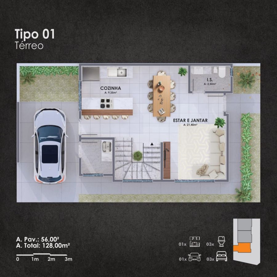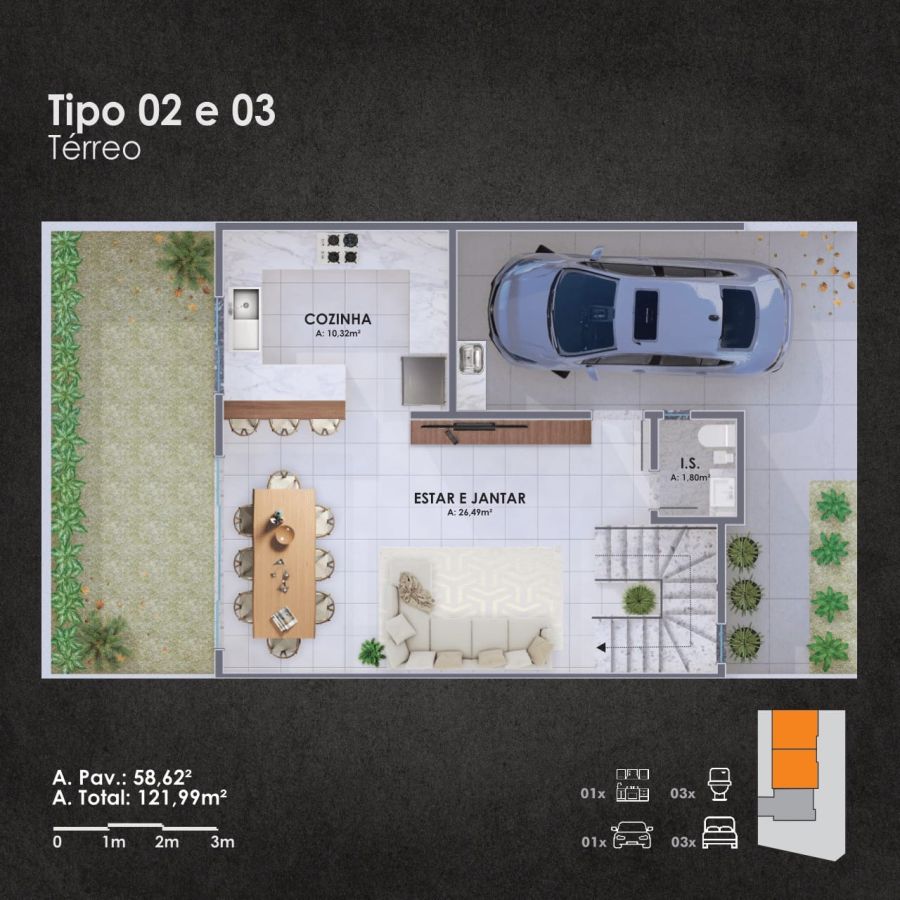 A garagem é totalmente coberta e conta com ponto para carregamento de veículos elétricos. A região possui infraestrutura completa, com comércio, serviços e escolas no entorno, fator que garante praticidade, valorização e excelente liquidez ao imóvel.
