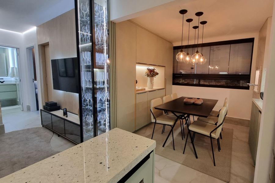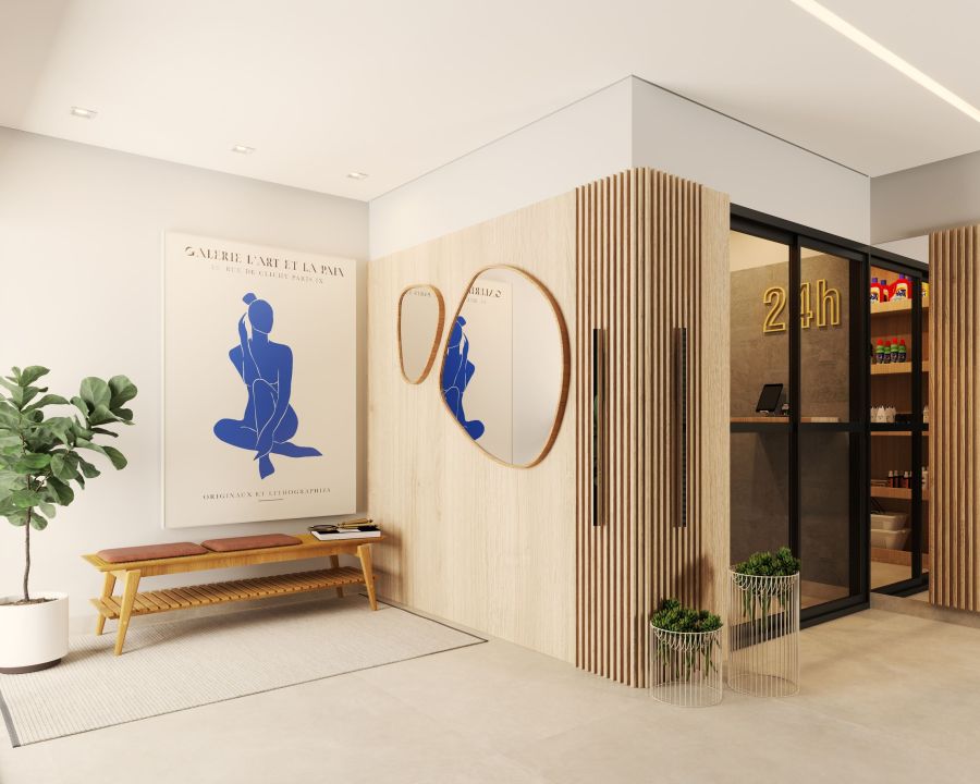 Os acabamentos unem elegância e funcionalidade, com forro de gesso, revestimento nas áreas úmidas e possibilidade de personalização dos pisos. A tecnologia traz mais conforto e segurança com elevadores inteligentes, iluminação em LED com sensores nas áreas comuns, portaria remota e preparação para medição individual de água e gás, garantindo economia e praticidade no dia a dia.