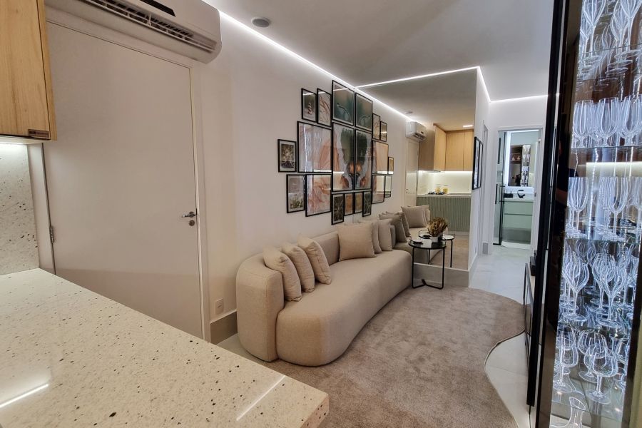 O empreendimento oferece plantas inteligentes de 33,4 m² a 62,2 m², com opções de 1 a 3 quartos, 1 a 2 banheiros e sacadas amplas, ideais para viver momentos especiais com a família. Os ambientes contam com preparação para água quente na cozinha, banheiro e lavanderia, além de churrasqueira a carvão na sacada, criando o cenário perfeito para receber bem.