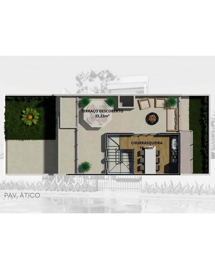 Ático com terraço descoberto, quintal, jardim e espaço lounge