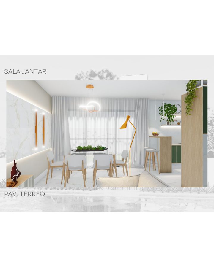 Belíssimo sobrado de alto padrão, com 3 pavimentos + terraço descoberto, somando 143,57 m² de área construída + aproximadamente 38 m² de terraço, distribuídos em: