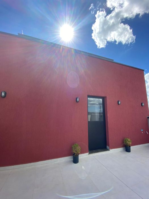 O condomínio já está constituído e oferece elevador, medidores individuais de água, energia e gás, além de infraestrutura para água quente na cozinha e banheiro. Conta ainda com lavanderia coletiva e um salão de festas no terraço com uma vista deslumbrante da cidade.